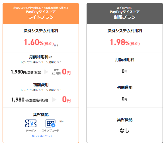 つまり、毎月1,980円支払う代わりに、PayPayクーポンやスタンプカード発行することで、PayPayユーザーをたくさん集客すれば、決済手数料が安くなってお得!という仕組みなんです。