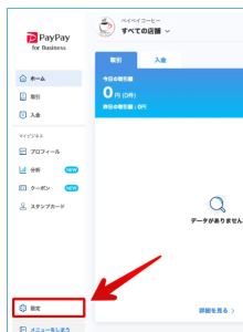 ➊ペイペイ管理サイトにログインして「設定」をクリックします。