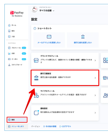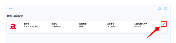 では、PayPayの加盟店審査に通過したら、管理サイトから登録した銀行口座をゆうちょ銀行に変更しましょう。