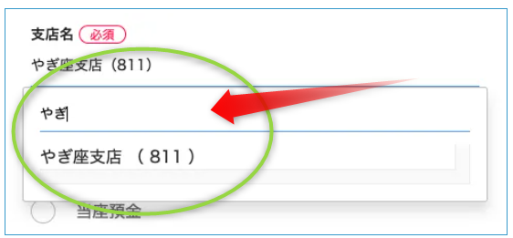 つづいて、口座種別(普通・当座)、口座名義人、口座番号を入力します。