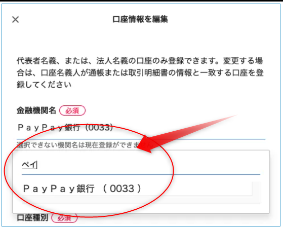 ただし、PayPay加盟店の申込みのときには、ゆうちょ銀行を登録できず、他の金融機関の口座を登録しておきます。